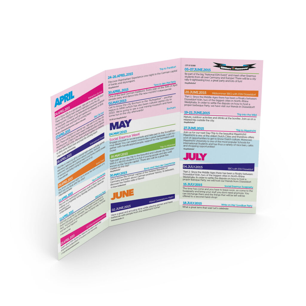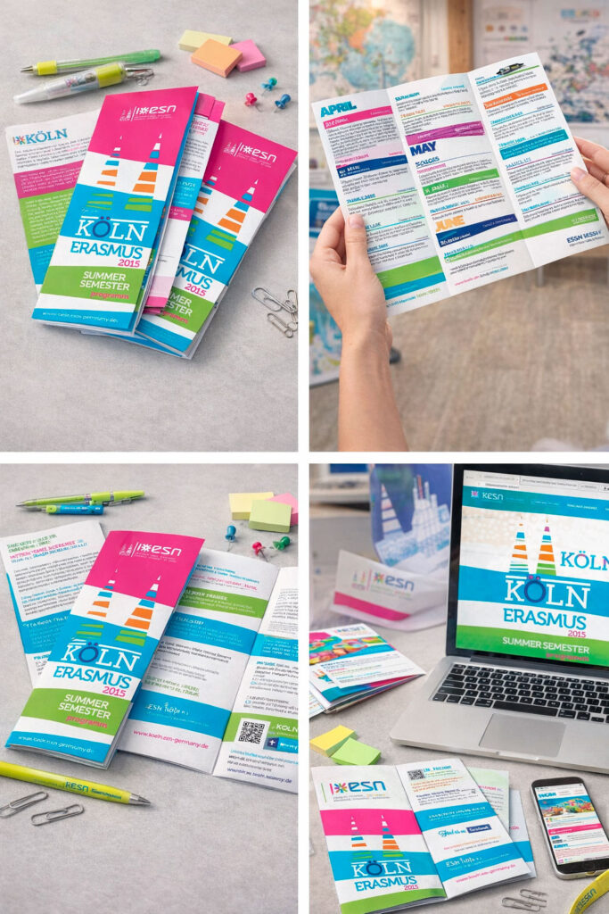 Logo design for ESN Köln (Erasmus student network) and information brochure for the summer semester 2015
