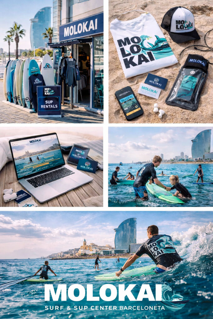 Brand identity for a surf school and SUP center in Barcelona.